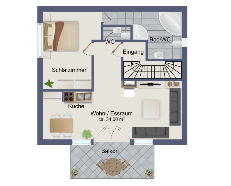 Süd -Balkon 12 qm